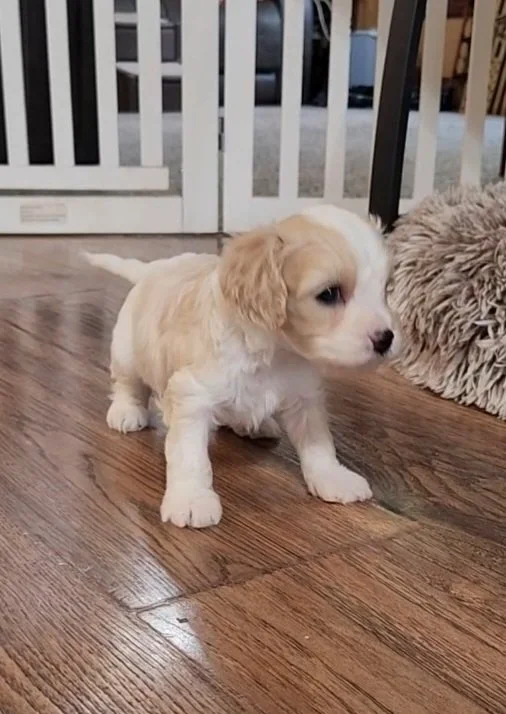 Puppy Note: Kobe is apricot and white. Kobies tail is always going. He has a happy disposition.