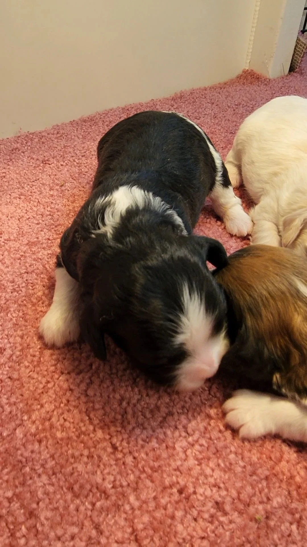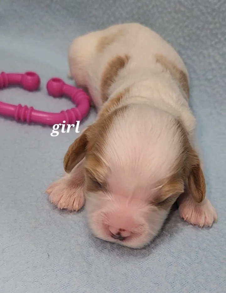 Our cavalier puppies are sweet loving pups. We will be working with them on potty training, grooming, from brushing to clipping nails, checking teeth , and tactile stimulation. This encourages them with physical touch on their paws, tails, tummy, and ears. They are handled everyday with this training.