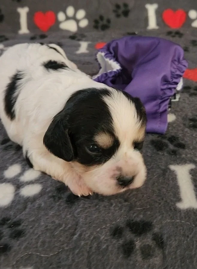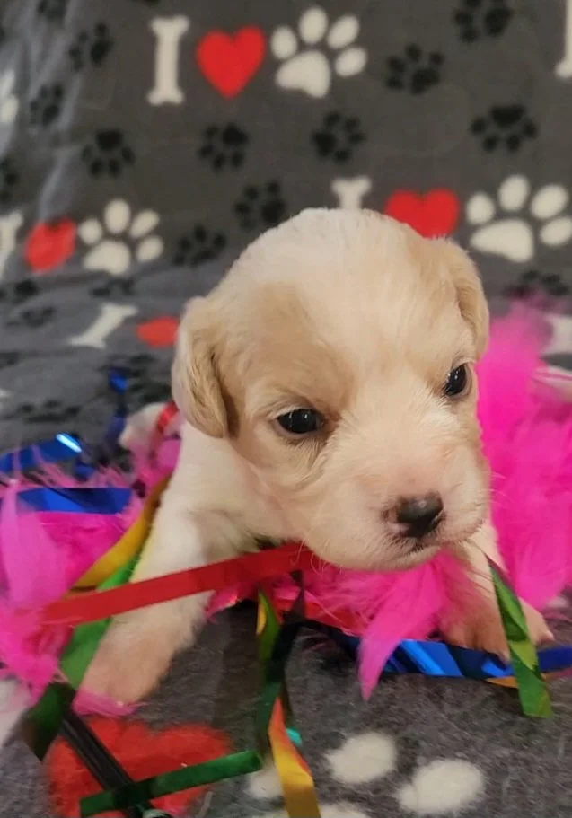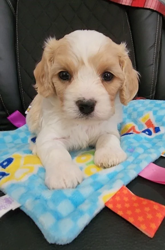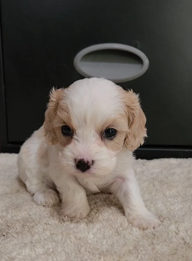 Puppy Note: Stitches is a first generation cavachon and is hypoallergenic with little to no shedding. He will work well for anyone with allergies. Stitches loves to have his belly rubbed.