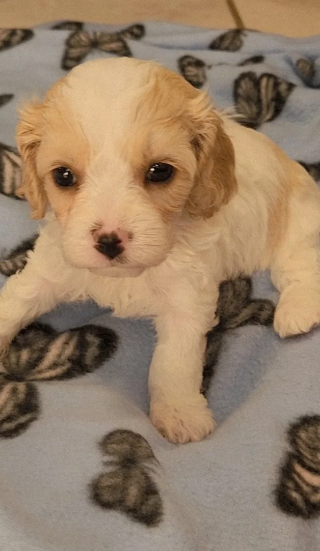 Puppy Note, . Fawn, is a beautiful cavachon. First generation. She is very gentle and loving.